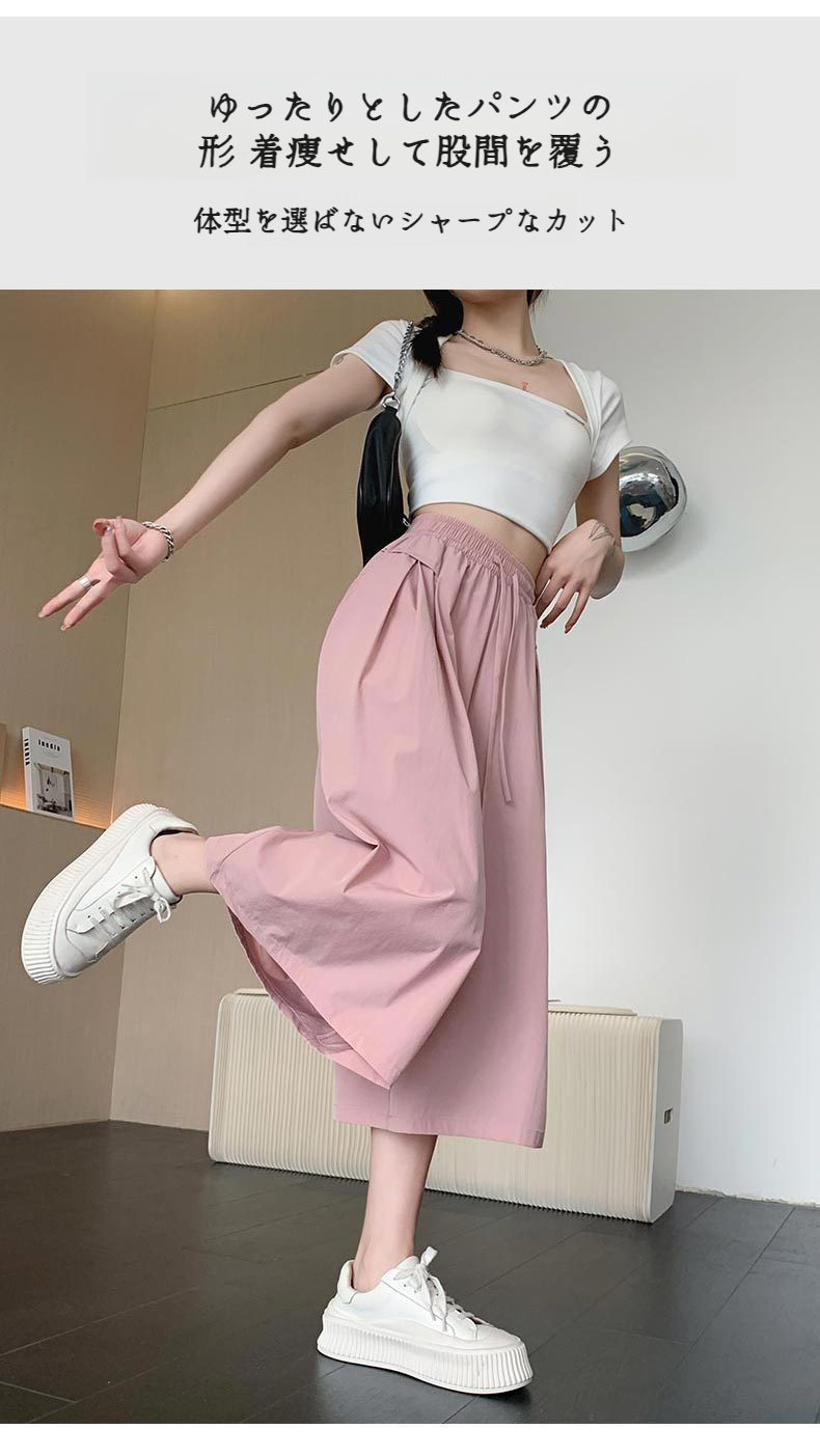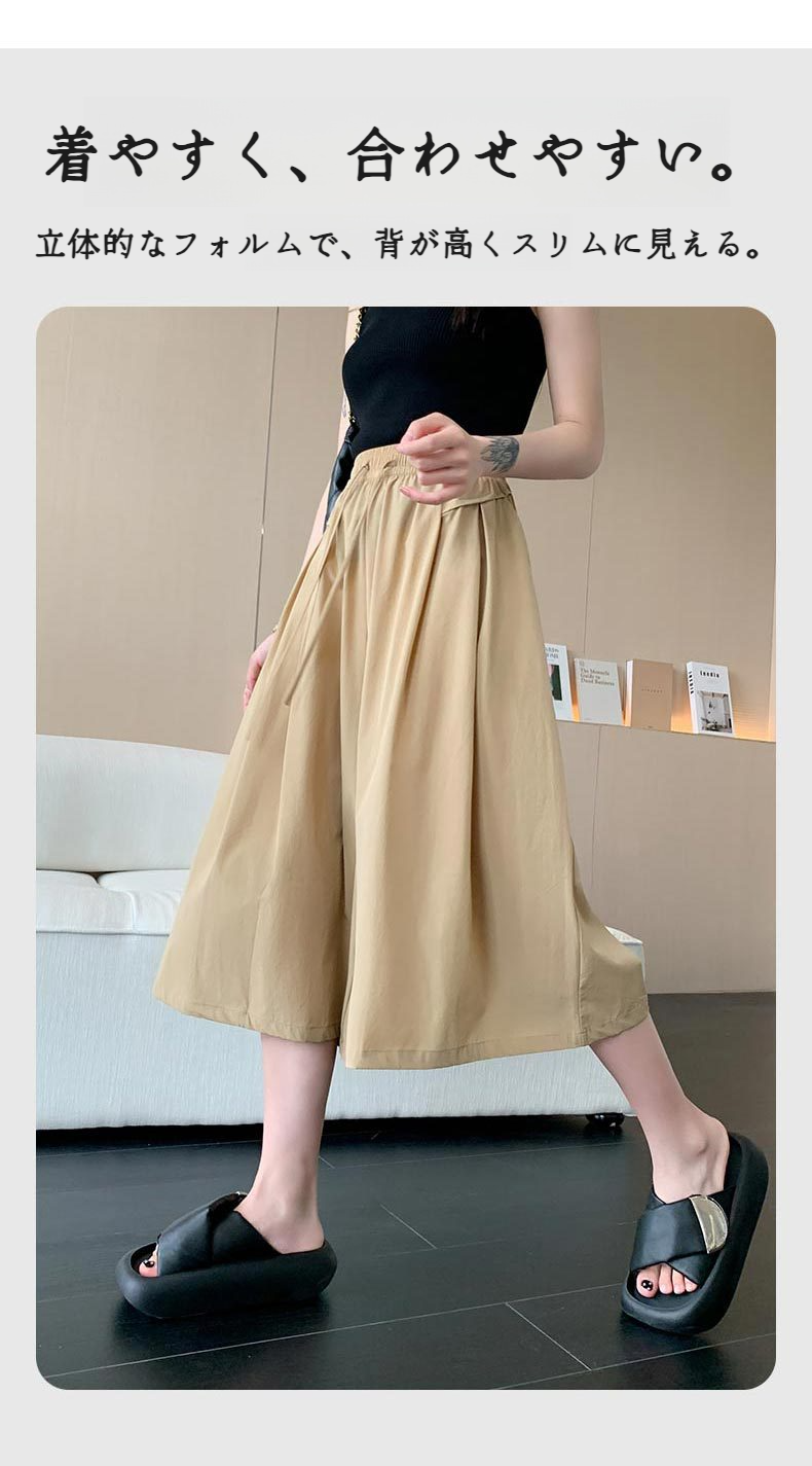 レディースゆったりパンツハイウエストアイスシルクワイドパンツゆったりスリムワイドパンツ